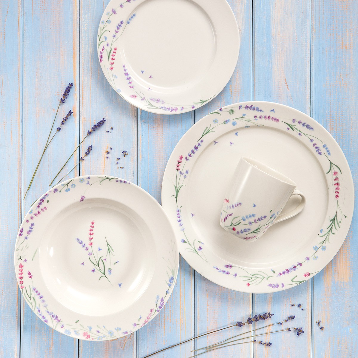 Talíře PROVENCE jsou vyrobeny z přírodního porcelánu a upoutají pozornost svým atraktivním dekorem s motivem levandule.