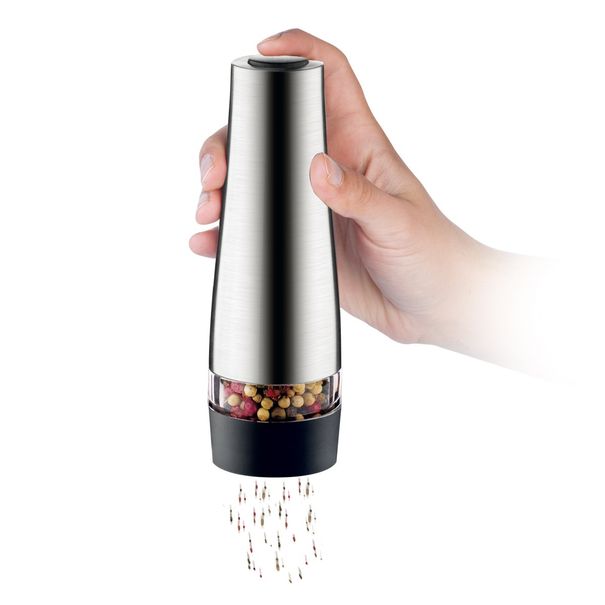 Jednoduše tím, že mele sám při pouhém zmáčknutí tlačítka a tak výrazně usnadňuje mletí a tím i vaření. Opatřili jsme ho špičkovým mlecím mechanismem s nastavitelnou hrubostí a výkonným motorem, díky kterým v mžiku namele požadované množství soli nebo pepře, ale i tymiánu, rozmarýnu a dalšího sušeného koření.