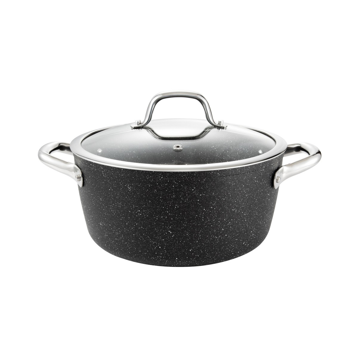 Kastrol PRESIDENT Stone na indukci i na všechny ostatní typy sporáků má exkluzivní vzhled neleštěného přírodního kamene.