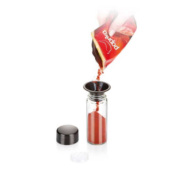 Luxusní souprava vynikající pro uložení koření na kuchyňské lince i jídelním stole. Koření je uloženo přehledně, díky otočnému stojánku je snadno dostupné. Násypka pro snadné plnění kořenek je uložena ve stojánku. Kořenky jsou univerzální, dodávány s 8 víčky pro mleté koření a 8 náhradními víčky pro koření celé. Vyrobeno z prvotřídního odolného skla a kvalitního plastu. Skleněné dózy, víčka, uzávěry a násypka jsou vhodné do myčky, stojánek čistěte vlhkou utěrkou. 3 roky záruka.
