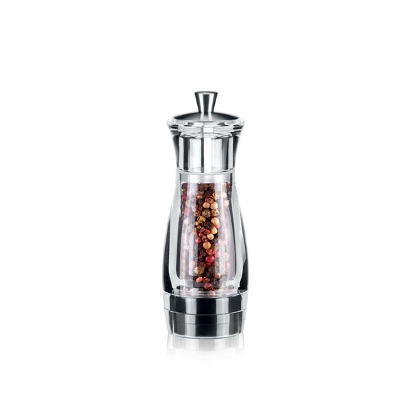 Vynikající pro snadné dochucování pokrmů čerstvě mletým pepřem. Opatřený prvotřídním keramickým mlecím mechanismem s nastavitelnou hrubostí mletí. Vyroben z odolného transparentního plastu a nerezavějící oceli. Čistěte vlhkou utěrkou a osušte, nemyjte v myčce. 3 roky záruka.