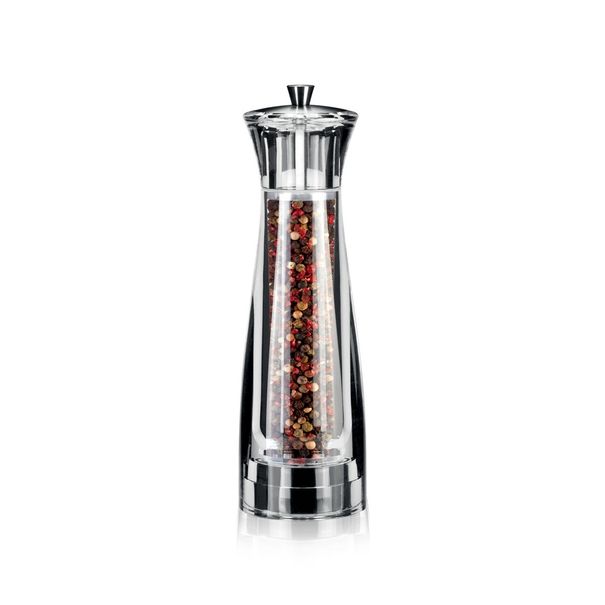 Vynikající pro snadné dochucování pokrmů čerstvě mletým pepřem. Opatřený prvotřídním keramickým mlecím mechanismem s nastavitelnou hrubostí mletí. Vyroben z odolného transparentního plastu a nerezavějící oceli. Čistěte vlhkou utěrkou a osušte, nemyjte v myčce. 3 roky záruka.