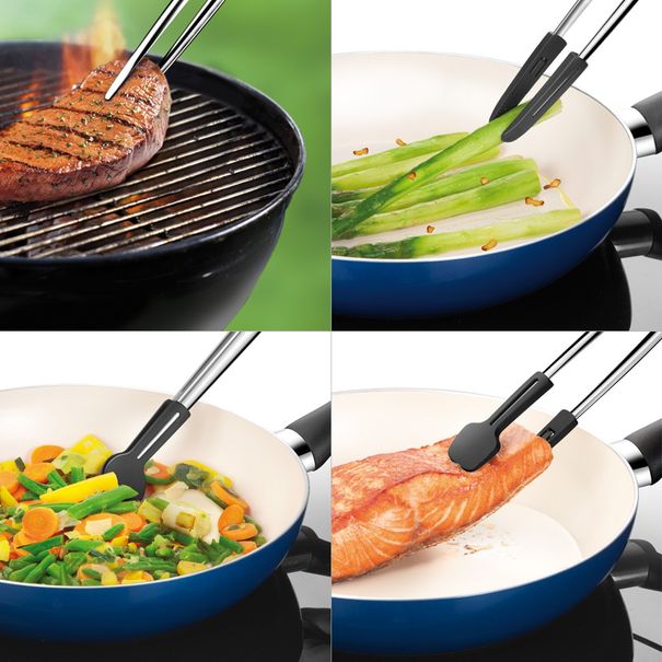 Při vaření a grilování by se vám jistě hodily tři páry rukou… nebo unikátní multifunkční kuchařská pinzeta 3 v 1 z kvalitní nerezavějící oceli. Stačí jen vyměnit zakončení z kvalitního žáruvzdorného nylonu a získáte kuchyňskou pinzetu, široké kleště nebo vařečku.