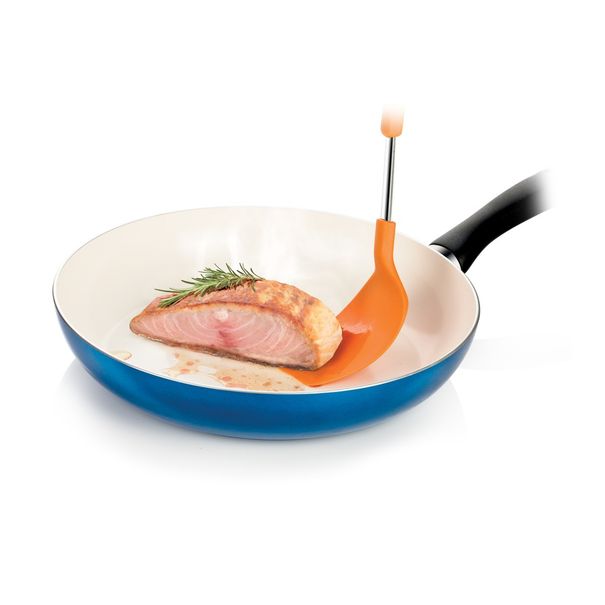 Pružná obracečka vynikající pro snadné podebírání a obracení pokrmů, vhodná pro všechny druhy nádobí včetně nádobí s antiadhezním povlakem, které nepoškodí. Vyrobeno ze žáruvzdorného nylonu (210 °C), prvotřídní nerezavějící oceli a odolného plastu, vhodné do myčky. 3 roky záruka.