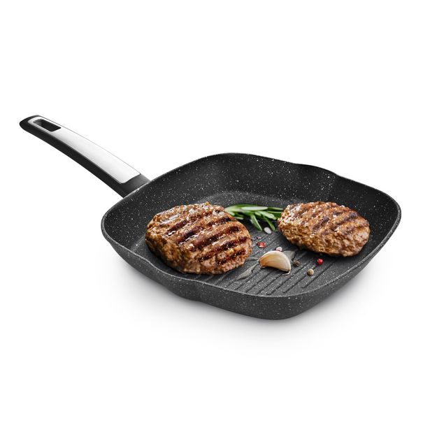 Existuje mnoho druhů pánví, ale jen jedna umí steaky a další speciality připravit s dokonale rovnoměrně opečeným povrchem – představujeme pánev s charakterem přírodního neleštěného kamene i-PREMIUM Stone.