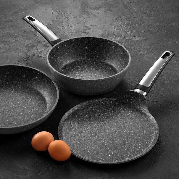 Existuje mnoho druhů pánví, ale jen jedna umí steaky a další speciality připravit s dokonale rovnoměrně opečeným povrchem – představujeme nepřilnavou pánev s charakterem přírodního neleštěného kamene i-PREMIUM Stone.