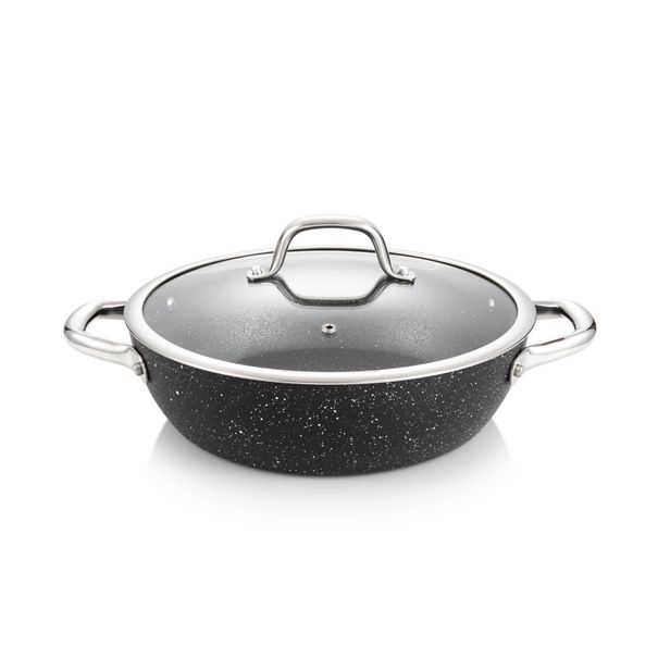 Hluboká pánev PRESIDENT Stone má prvotřídní nepřilnavý povlak z obou stran nádoby a je vynikající pro intenzívní používání na všech typech sporáků včetně indukčních i v pečicích troubách.