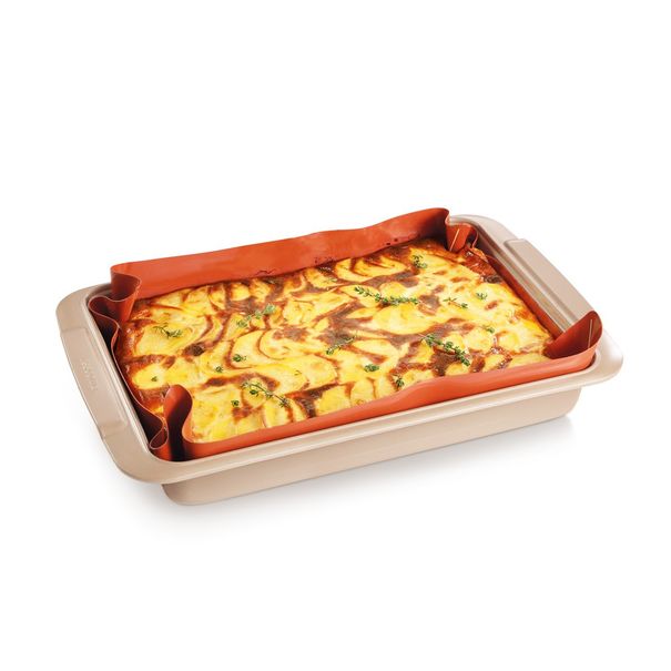 Maso brambory, zelenina i nákypy jsou pak nejen propečené rovnoměrně, ale hlavně se nepřipalují a nelepí, takže dno i stěny hlubokého pekáče zůstávají po použití čisté.