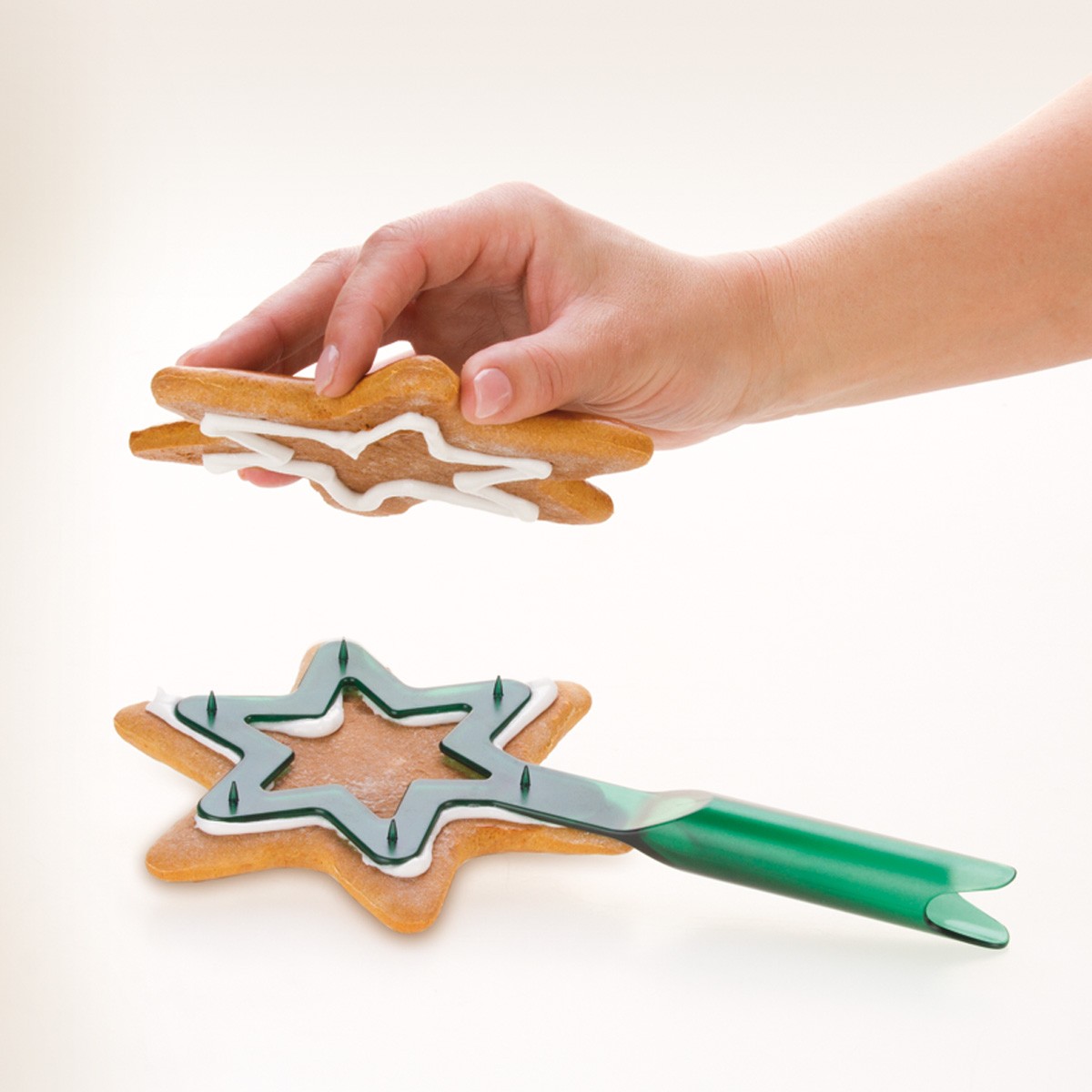 souprava pro přípravu perníkové hvězdy na vánoční stromeček, skvělá zábava pro celou rodinu při přípravě originální vánoční dekorace. Souprava obsahuje velké plastové vykrajovátko ve tvaru vánoční hvězdy a nosník pro umístění perníkové hvězdy na špici vánočního stromečku. Vykrajovátko lze použít i samostatně pro přípravu vánočního cukroví. Návod a recept uvnitř balení. 3 roky záruka.