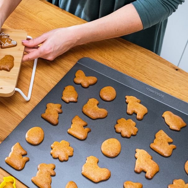 Praktický plech bez okrajů pro snadnější manipulaci s pečivem