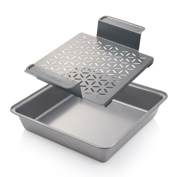 Tento plech je vybavený vyjímatelným roštem, díky tomu lze všechny pokrmy připravované v plechu bez omezení podlévat vodou, vývarem, vínem, pivem apod.Plech s roštem je proto ideální pro přípravu trhaného a pomalu pečeného masa, drůbeže, ryb i zeleniny. Pokrmy podlité tekutinou a připravované na roštu jsou dokonale propečené ze všech stran a zůstávají šťavnaté. Rošt s prostornými úchyty lze snadno vyjmout a hotový pokrm na něm bezpečně přenést.