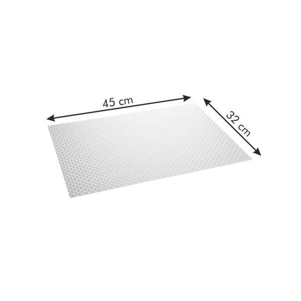 Elegantní prostírání z omyvatelného syntetického materiálu, čistěte vlhkou utěrkou nebo opláchněte pod tekoucí vodou. Nemyjte v myčce, nesušte na topení.