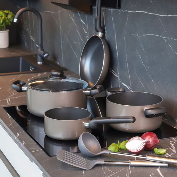 Nádobí BRAVA je kvalitní kuchyňské nádobí s moderním designem, určené pro každodenní intenzivní použití. Linie BRAVA zahrnuje všechny nejpoužívanější typy a velikosti pánví, včetně woku, kastrolů a rendlíku. Kuchyňské nádobí BRAVA je opatřeno prvotřídním antiadhezním povlakem proti připalování a má indukční dno vhodné pro použití na všech typech sporáků včetně indukčních.
