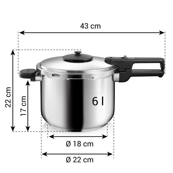 Je vynikající pro rychlou přípravu pokrmů a úsporu energie. Vychází vstříc těm zákazníkům, kteří při vaření v tlakových hrncích upřednostňují bezpečné použití a zároveň nekomplikované ovládání.