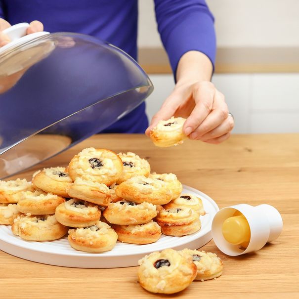 Umožňuje snadné a rychlé vykrajování těsta na koláčky s důlkem pro náplň, vykrajování těsta na koblížky či donuty i vykrajování těsta na kulaté linecké cukroví.