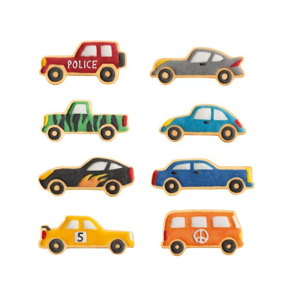 Autíčka jsou na zadní straně obalu popsány, vykrajovátka a cukroví tak mohou sloužit i jako zábavná vzdělávací pomůcka.